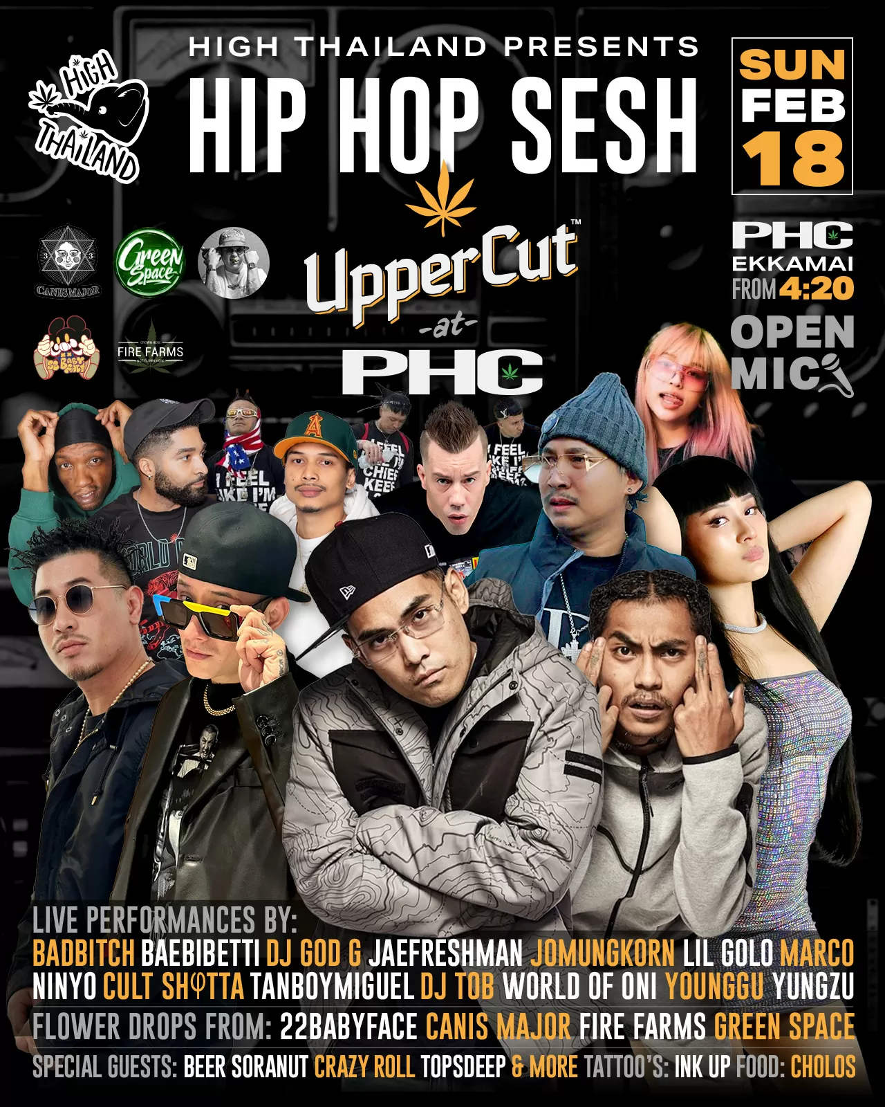 PHC Ekamai Dispensary PHC Ekkamai 126, 37 Park Avenue, Klongtan, Watthana, Bangkok,Join us as @uppercut.420 dives deep into the Thai HipHop and cannabis culture at PrettyHighCannabis Ekkamai @phc_ekkamai with our friends Younggu and Yungzu—a whole crew of local and international artists & special guests—live music—tattoos—food and so much more.